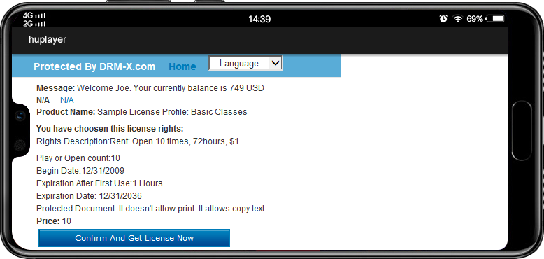 ইন্টিগ্রেশনের পরে, ব্যবহারকারী এখনও আপনার আসল অ্যাপে লগইন করুন। উদাহরণস্বরূপ, আপনার অ্যাপ ক্রয়কৃত ভিডিও তালিকা দেখাতে পারে। যখন ব্যবহারকারী সুরক্ষিত ভিডিও ফাইল চালায়, তখন আপনার অ্যাপটি কাস্টমাইজ করা প্লেয়ারকে কল করে এবং প্রয়োজনীয় প্যারামিটার, ভিডিও URL, এনক্রিপশন সদস্য লগইন তথ্য পাস করে এবং তারপর ব্যবহারকারী স্বয়ংক্রিয়ভাবে একটি লাইসেন্স পেতে পারে এবং তারপরে সুরক্ষিত ভিডিও অবিলম্বে চালাতে পারে। কাস্টমাইজ করা প্লেয়ার শৈলী আপনার অ্যাপের সাথে সামঞ্জস্যপূর্ণ হতে পারে, ভিডিওর কপিরাইট রক্ষা করার সময়, ব্যবহারকারীরা এখনও আপনার অ্যাপে ভিডিও চালানো অনুভব করতে পারে। স্বয়ংক্রিয়ভাবে লাইসেন্স বৈশিষ্ট্য প্রাপ্ত করার সাথে, এটি গ্রাহকদের নিখুঁত ব্যবহারকারীর অভিজ্ঞতা দেয়।