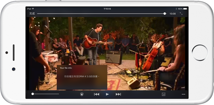 DRM-X 3.0 সুরক্ষিত উচ্চ মানের প্রিমিয়ার সামগ্রী বাজানো হচ্ছে। বর্তমান সমর্থন সুরক্ষিত MP4, WMV, WMA এবং MP3 ফর্ম্যাট বাজানো।